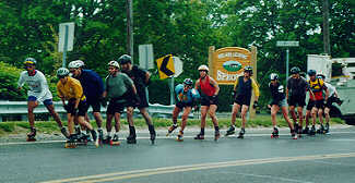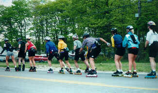 Over thirty skaters started the Empire Skate Club's 1998 Mastic to Montauk skate. The wet weather caused all but ten to drop out, but what fun we had anyway!