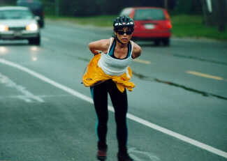 | Sabine leads the pack while Pascal has no trouble keeping up in his fours | Team PowerBar is all smiles despite the drizzle | |||||